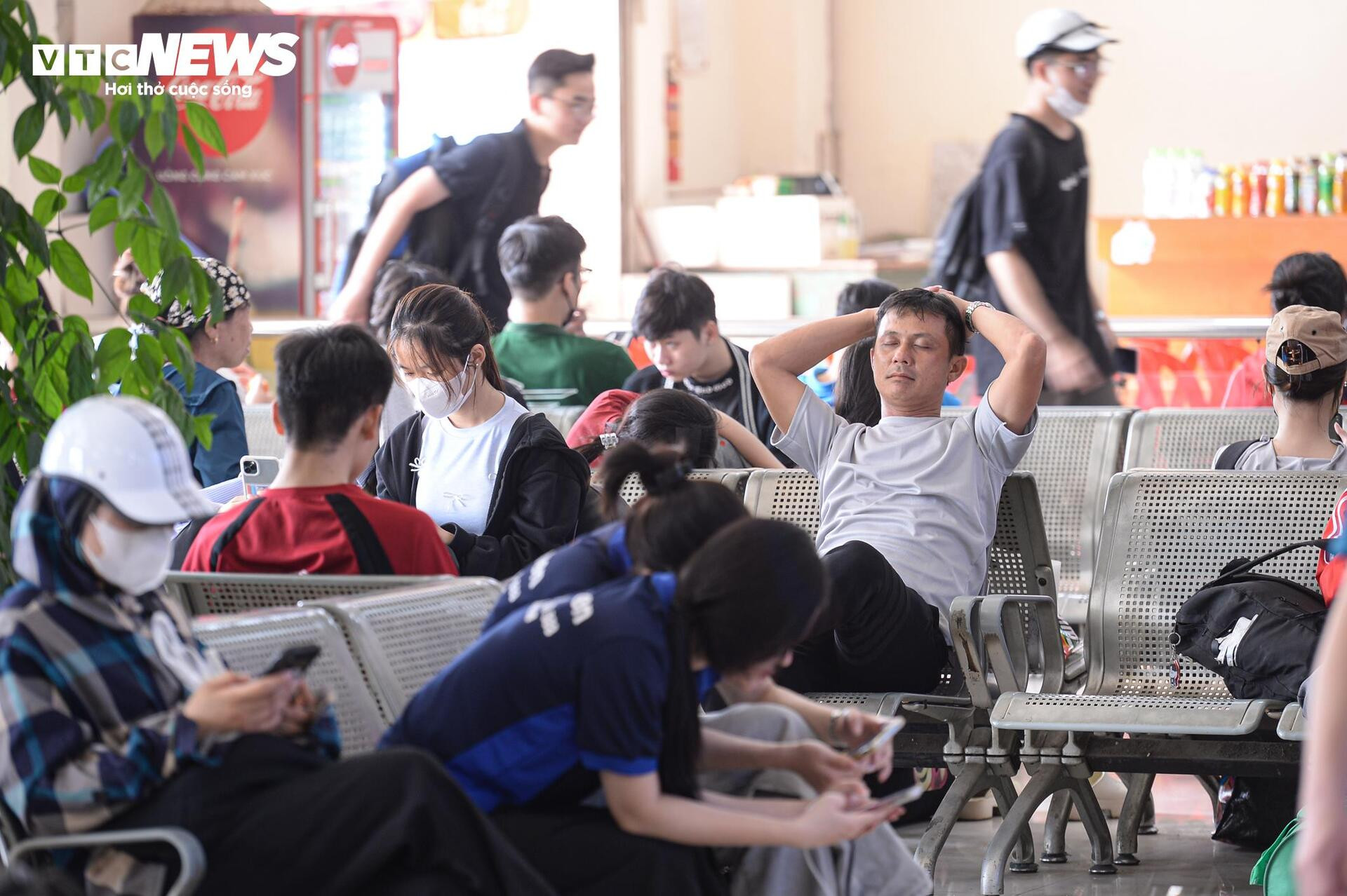 Tại sảnh chờ Bến xe Mỹ Đình, nhiều hành khách ngồi nghỉ ngơi chờ chuyến xe đưa họ về quê nghỉ lễ.