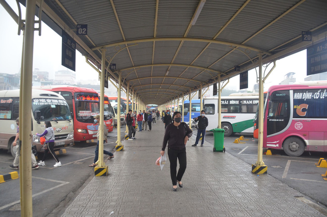 Ghi nhận của PV tại bến xe Giáp Bát, tại đây rất ít người dân ra bắt xe về quê. Hai bên khu vực chờ xe khách và chờ xe buýt đều thưa thớt người.