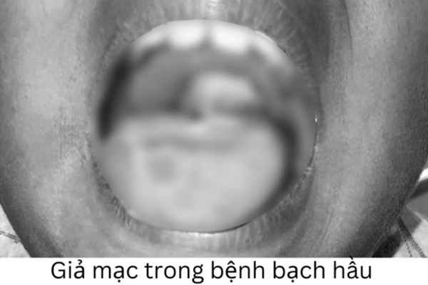 - Xuất hiện mảng giả mạc màu xám hoặc trắng ở hầu họng, thanh quản hoặc mũi, có thể làm nghẹt đường thở