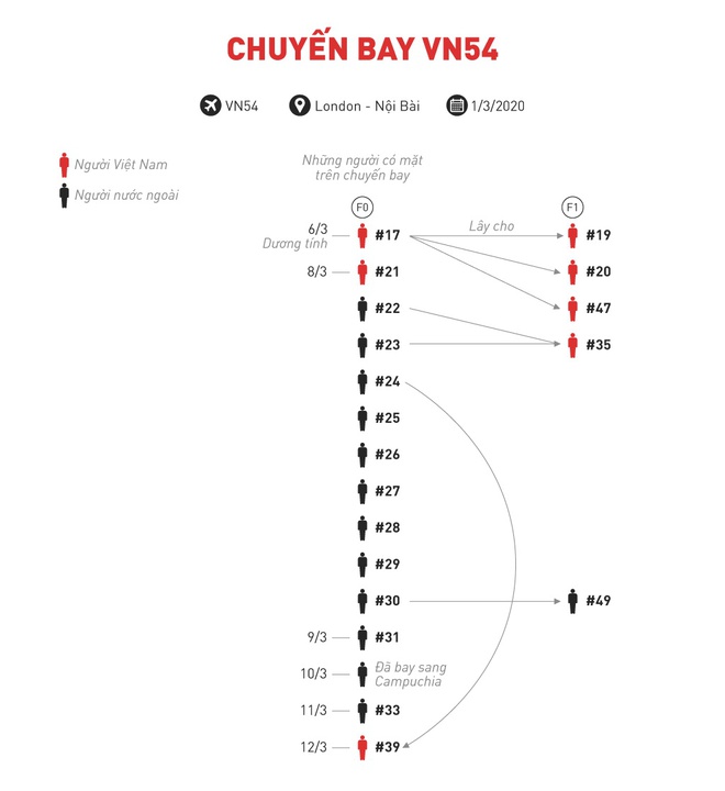 Đây là hành khách đi trên chuyến bay VN54 cùng bệnh nhân số 17 (trú ở Hà Nội) từ London về sân bay Nội Bài vào sáng 2/3. Hai du khách này ở lại Hà Nội 3 ngày, sau đó đi Hải Phòng bằng tàu du lịch trước khi quay lại sân bay Nội Bài.