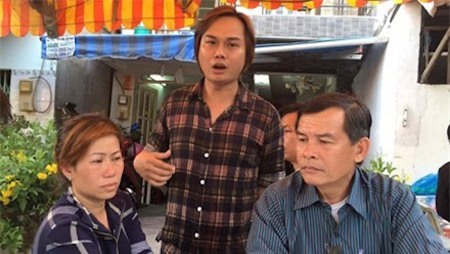 Chị Tuyết (bìa trái) và anh Tiến (giữa) khá bức xúc về cái chết của ông Dương Văn Tài ngày 4/4 tại Bệnh viện quận 4, TP HCM. |