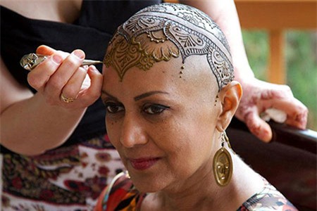 Nhiều phụ nữ Canada bị rụng tóc vì xạ trị cảm thấy tự tin hơn nhờ các hình xăm nghệ thuật Henna trên đầu.