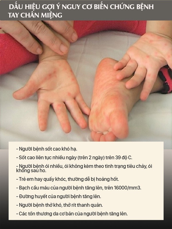 Khi trẻ mắc phải bệnh chứng này, đừng xem thường khi thấy trẻ ngủ không yên, giật mình, khóc quấy. Trong trường hợp này, khi thấy trẻ ngủ li bì, mê mệt, cho dù không mê man các bậc cha mẹ phải nhanh chóng đưa con em mình đến bệnh viện để được điều trị bởi có thể là bệnh đã biến chứng sang viêm màng não. Đây là lúc bệnh đã trở nặng và có khả năng gây nguy hiểm cao. Không nên bôi, xức các loại thuốc lên các mụn nước hay vết lở của trẻ. Bởi khi các vết lở hay mụn nước ngoài Da khô đi nhờ thuốc bôi, các bác sĩ sẽ khó chẩn đoán chính xác bệnh trạng của các em bé hơn.