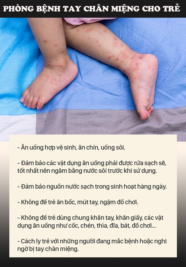 Bác sĩ Trương Văn Quý khuyến cáo để phòng tránh căn bệnh nguy hiểm này, cả người lớn và trẻ em cần rửa tay thường xuyên bằng xà phòng dưới vòi nước chảy nhiều lần trong ngày, đặc biệt trước khi chế biến thức ăn, trước khi ăn/cho trẻ ăn, trước khi bế ẵm trẻ, sau khi đi vệ sinh, sau khi thay tã và làm vệ sinh cho trẻ. Thực hiện tốt vệ sinh ăn uống, không mớm thức ăn cho trẻ, không cho trẻ ăn bốc, mút tay; không cho trẻ dùng chung khăn ăn. Thường xuyên lau sạch các bề mặt, dụng cụ tiếp xúc hàng ngày như đồ chơi, dụng cụ học tập, tay nắm cửa, tay vịn cầu thang, mặt bàn.