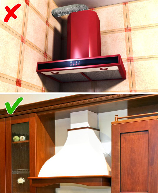 Đường ống rất dễ lắp đặt nhưng không dễ làm sạch vì theo thời gian, bụi sẽ tích tụ trong các nếp nhăn nhỏ của ống. Ngoài ra việc để lộ một đường ống thông trên tường bám đầy bụi bẩn sẽ làm căn bếp của bạn trông lộn xộn và kém sang. Một lựa chọn tuyệt vời để giải quyết vấn đề này là lắp đặt hệ thống ống thông bằng nhựa vì nó rất dễ giữ sạch. Thỉnh thoảng bạn chỉ cần lau bằng khăn ẩm là đủ. Một cách khác là giấu tất cả các đường ống bên trong hệ tủ bếp được lắp đặt đến trần nhà.