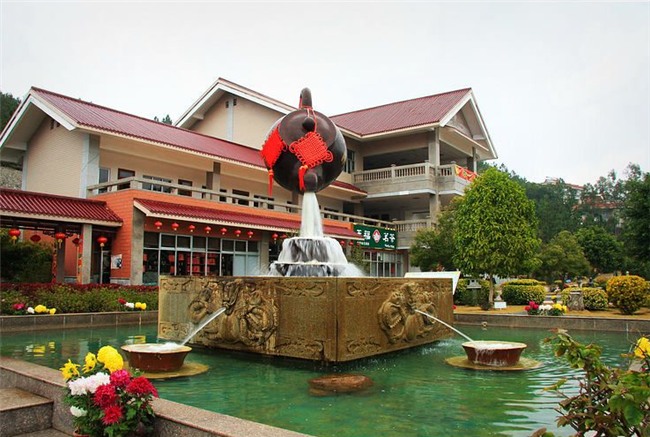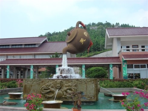 Sở dĩ có hiện tượng "lơ lửng" là nhờ giá đỡ nối giữa đế đài phun nước với ấm trà.