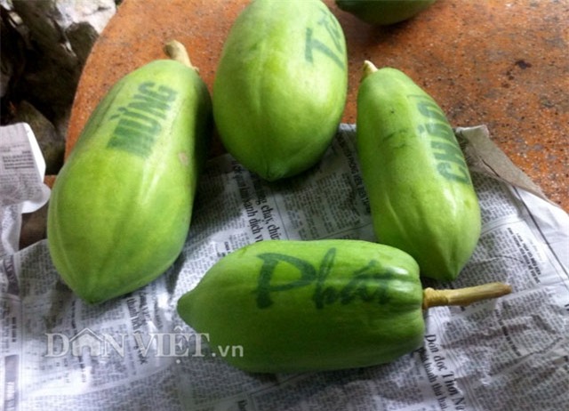 Các chữ được in trên trái đu đủ được nhóm chị Ướm làm gồm “Phát”, “Lộc”, “Thọ”, “Tài”... |
