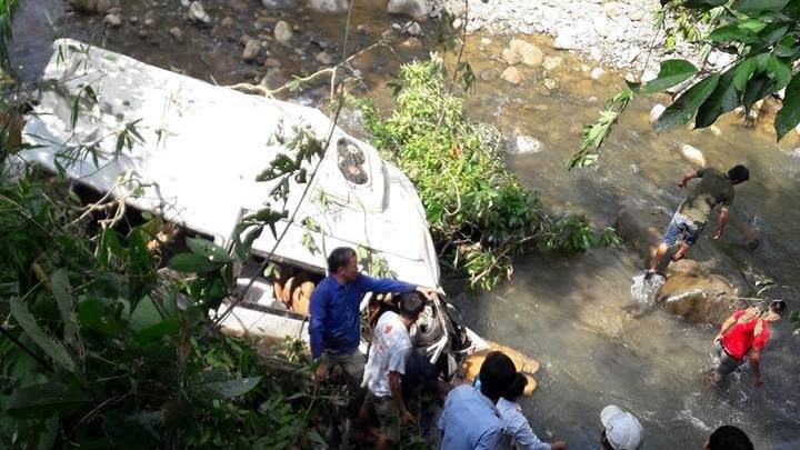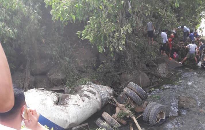 Do cú đâm mạnh, khiến 2 xe bị văng khỏi đường cùng lao xuống vực suối với nhiều đá lớn.