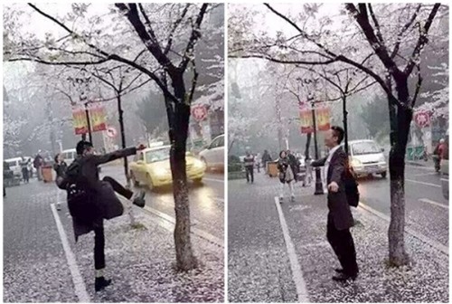 Đã có hai sinh viên của trường đại học Hồ Nam bị bắt sau khi tung clip ghi lại hình ảnh cả hai đang thay phiên nhau rung cây khiến cho toàn bộ hoa anh đào rụng xuống mặt đất để tạo dáng chụp ảnh.