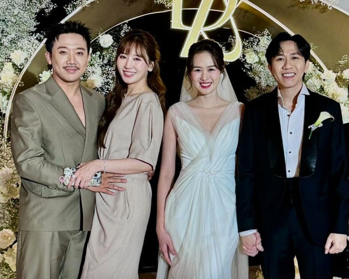 Vợ chồng Trấn Thành trong ngày cưới của Anh Đức.