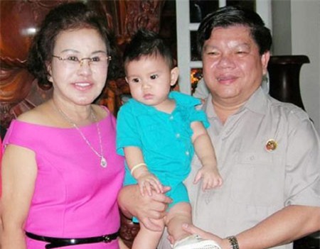 Vợ chồng đại gia Diệu Hiền trong ngày mừng thôi nôi cháu nội. |