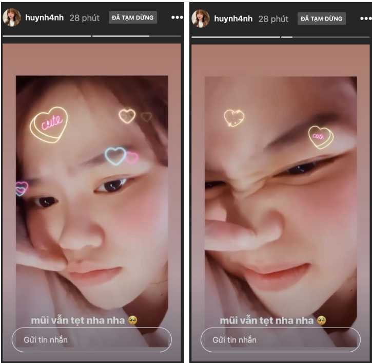 Trước thông tin này, Huỳnh Anh đã có động thái khiến antifan "tắt điện". Cụ thể, cô nàng đã đăng story cận cảnh chiếc mũi và còn lấy tay day đi day lại phần đầu mũi để chứng minh mình chưa hề phẫu thuật thẩm mỹ. Huỳnh Anh còn khá vui vẻ tự nhận "mũi vẫn tẹt".