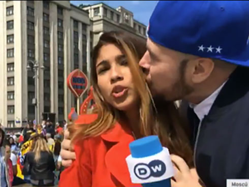 Nam CĐV, tự xưng là Ruslan, đã gọi điện đến đài DW để xin lỗi vì hành vi của mình. Anh thừa nhận hành vi tiếp cận với nữ phóng viên Theran người Colombia là bởi đã thua một trận cá cược với bạn bè.