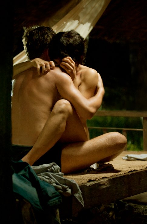 Một ngôi nhà lá đơn sơ giữa một cánh đồng mênh mông, trời về chiều bầu trời xanh thẳm, gió thổi man mác, cả đoàn phim đều lên tinh thần chuẩn bị cho cảnh quay mùi mẫn. Trước ngôi nhà lá là một chiếc giường tre, hai diễn viên tây cực kỳ đẹp trai và xinh gái đã sẵn sàng tư thế lột tất cả để diễn cảnh yêu nhau.
