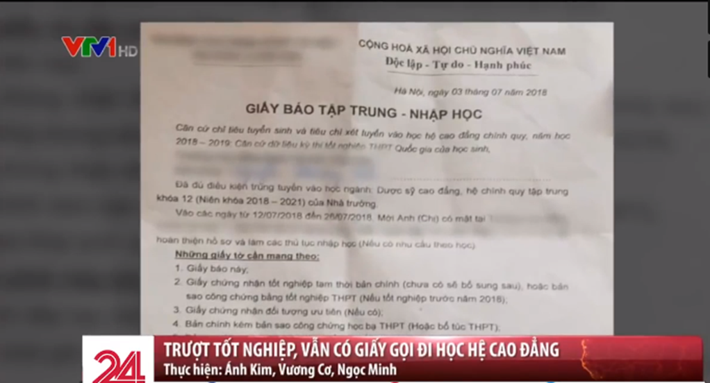 Trượt tốt nghiệp vẫn có giấy gọi đi học hệ cao đẳng. (Video: VTV24)