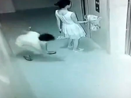 Tuy nhiên, cô gái vẫn ung dung đứng đợi thang máy mà không hề hay biết chuyện gì đang xảy ra với mình.