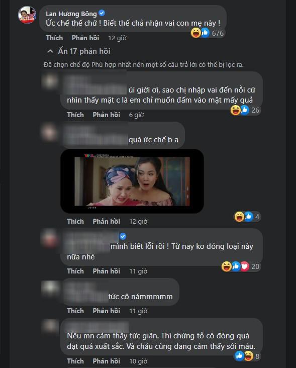 Ngay cả chính NSND Lan Hương cũng bị ức chế với nhân vật bà Hiền do bà đảm nhận. NSND Lan Hương để lại bình luận "Biết thế chả nhận vai con mẹ này", đồng thời hứa sẽ không đóng dạng vai như bà Hiền trong tương lai.