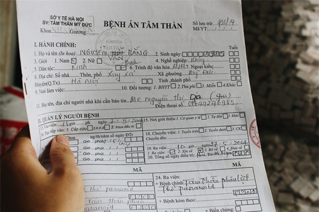 Hồ sơ bệnh án tâm thần của Bằng. |