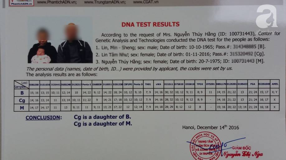 Không ngoài dự đoán, kết quả xét nghiệm trả về ghi rõ vợ của anh H. không phải là mẹ ruột cháu bé.