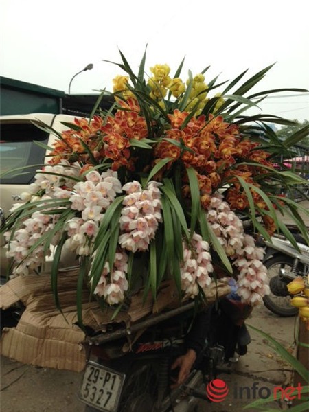 Chợ Quảng Bá (Tây Hồ, Hà Nội) những ngày này ngập tràn sắc hoa. Người mua người bán vô cùng nhộn nhịp. Đáng chú ý nhất vẫn là những chậu lan “khủng” được chào giá gần trăm triệu đồng.