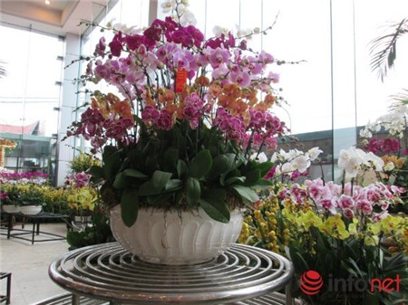 Các cây lan hồ điệp trưng bày ngày Tết thường ghép vào các chậu lớn, sắp xếp bắt mắt |