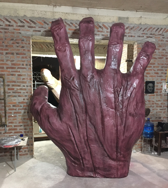 Được biết, chiếc găng tay này có chiều cao tới 4m, độ rộng gần 2m, cùng những đường nét chi tiết mô phỏng cánh tay trong phim chính xác đến 90%.