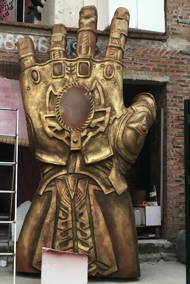Anh Thế Anh cho biết chiếc găng tay Vô cực này được thực hiện hoàn toàn bằng xốp:"Việc tạo hình từ xốp khối, không khác gì một tác phẩm điêu khắc, người thực hiện cần phải có kiến thức về mỹ thuật, tạo hình để tạo nên được những sản phẩm đúng tính chất, đúng hình thức.