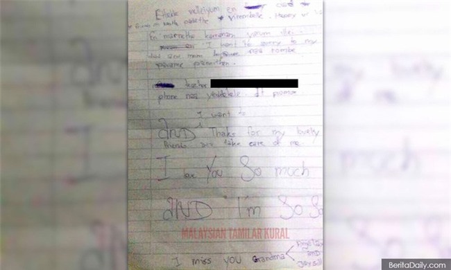Cô bé còn để lại thư tuyệt mệnh với lời khẳng định không hề lấy cắp điện thoại của cô và gủi lời chào vĩnh biệt tới bố mẹ và ông bà.