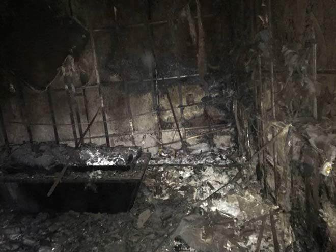 Quá trình khám hiện trường, do bị lửa thiêu nên các chất dễ cháy như đệm, thiết bị karaoke đã bị cháy đen.