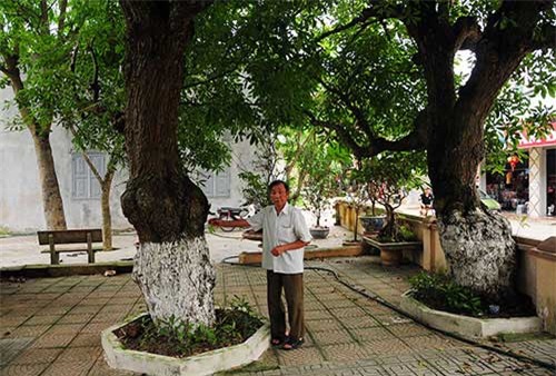 Ông Lan đứng giữa 2 cây lộc vừng Huynh Đệ.