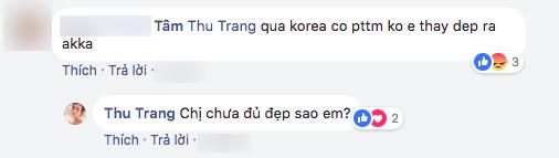 Ở phần bình luận, khá đông cư dân mạng đặt nghi vấn rằng Thu Trang đã can thiệp thẩm mỹ hoặc thực hiện thủ thuật để cải thiện nhan sắc tại Hàn Quốc. Ngay lập tức, "Hoa hậu hài" trả lời: "Chị chưa đủ đẹp sao em?" như một cách phủ nhận khôn khéo.