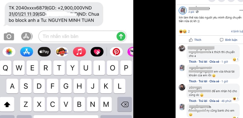 Cô bạn thậm chí còn cầu cứu dân mạng vì người yêu chuyển khoản liên tục.