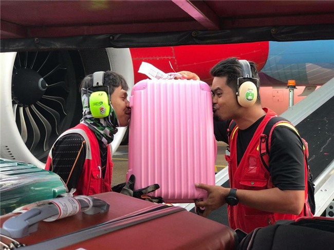 Tuy nhiên, nhân viên AirAsia có vẻ như rất nghe lời sếp và họ đã tiến hành "hôn" hành lý của khách hàng thật. Hàng loạt nhân viên đã chụp ảnh họ hôn vali của hành khách và những bức ảnh đã được chia sẻ hơn 8,000 lần trên Facebook. Một bài đăng chia sẻ: