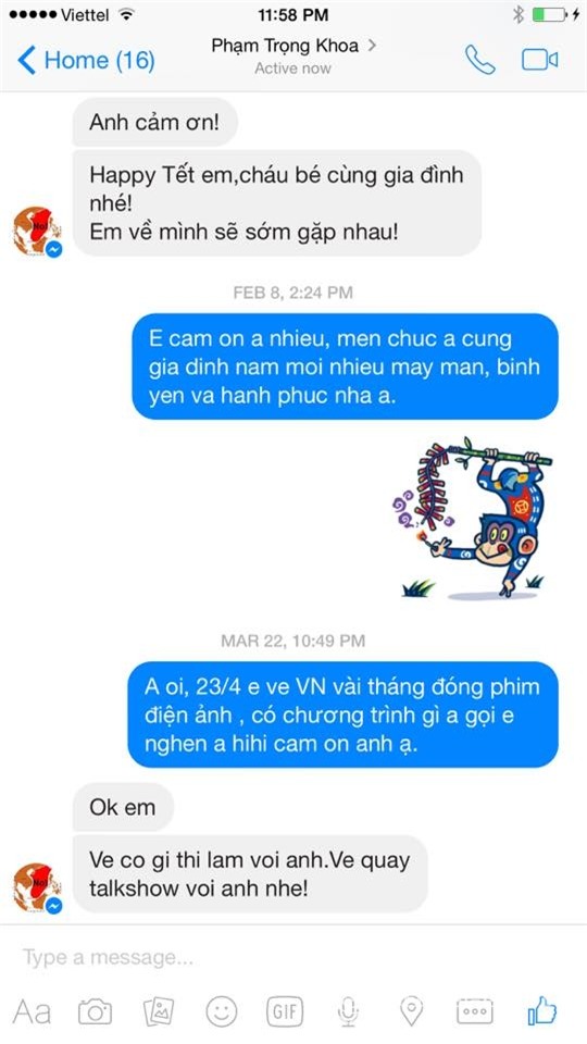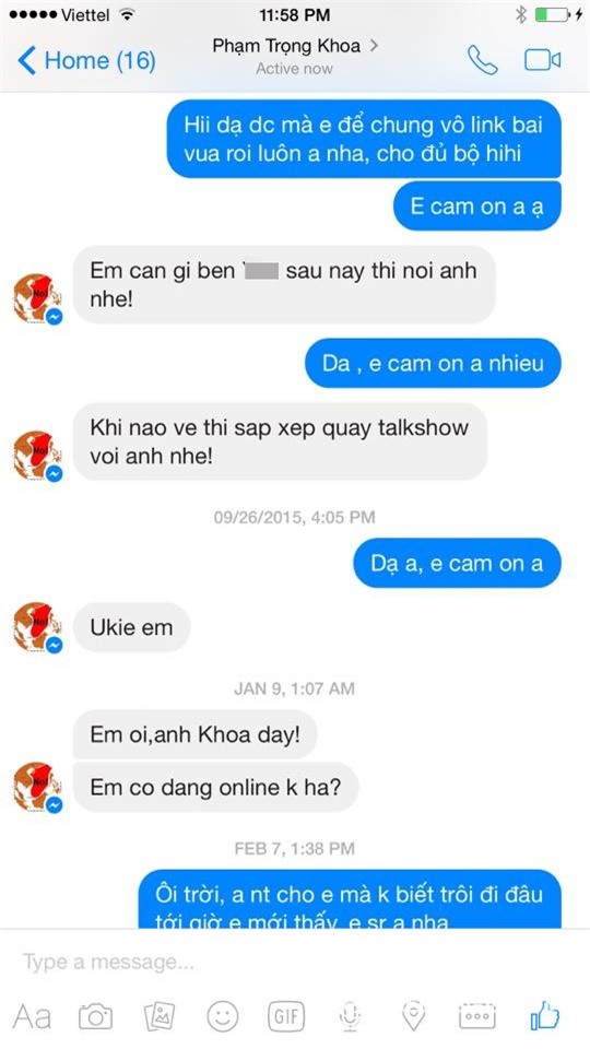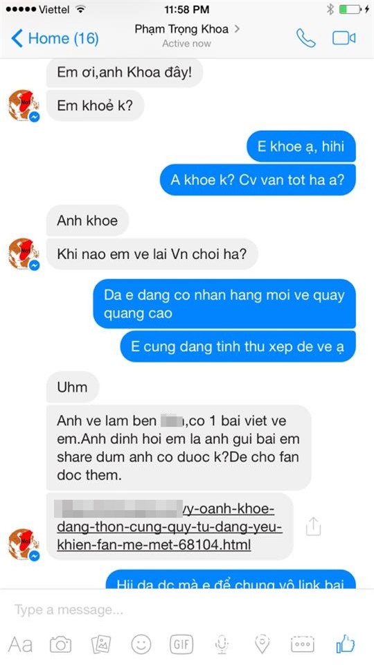 Đoạn tin nhắn giữa Vy Oanh và MC Anh Khoa đươc nữ ca sĩ chia sẻ. Vì trước đó,