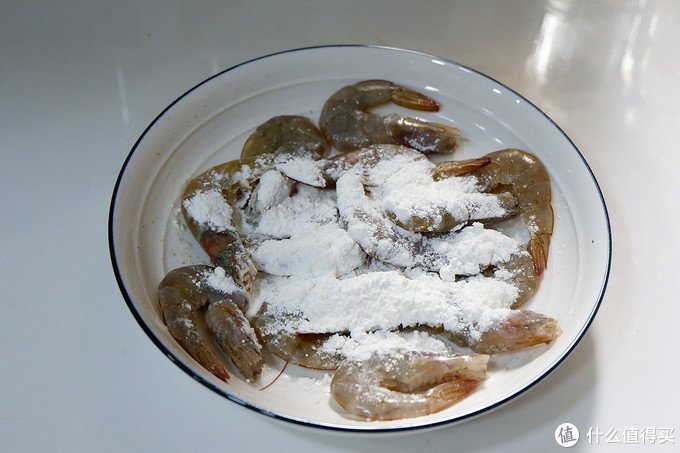 Sau khi ướp xong, trộn tôm với 3 thìa canh tinh bột sao cho bột phủ đều lên thân tôm.
