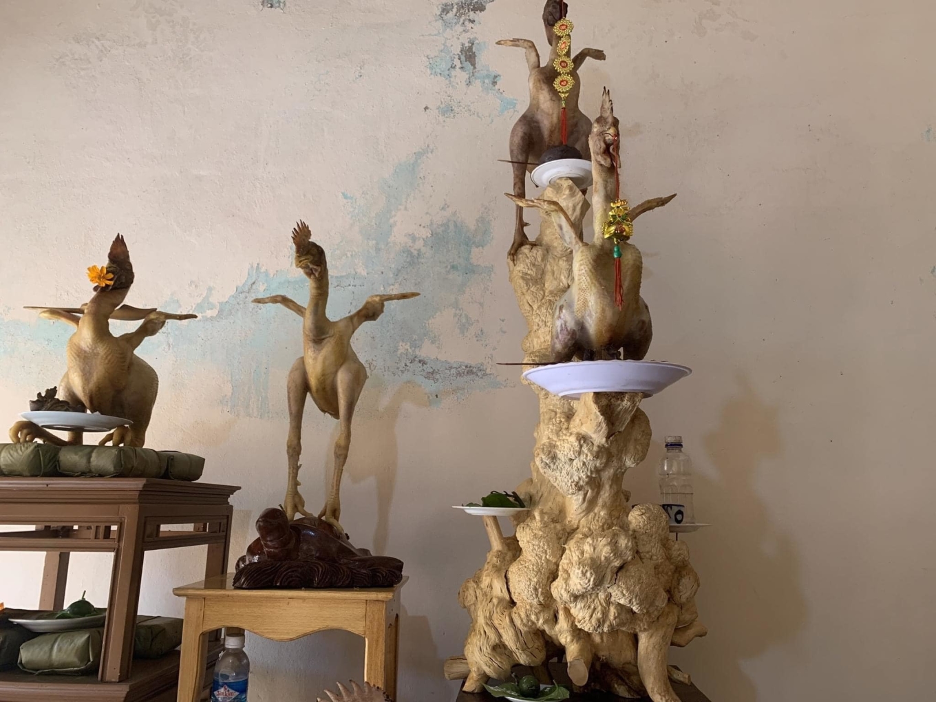 Vài ngày qua, mạng xã hội rần rần những tấm ảnh gà bay trong mâm cúng Rằm tháng Giêng của dòng họ Lê Quang ở xã Thạch Châu, huyện Lộc Hà, tỉnh Hà Tĩnh. Nhiều người trầm trồ và thán phục trước sự khéo léo của người thực hiện ra được các tư thế "bay" đa dạng của gà luộc như thế.