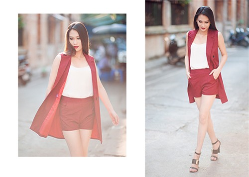 Với chiếc vest dáng dài, quần sóoc lịch lãm hơn và hoàn toàn có thể diện đến nơi công sở.