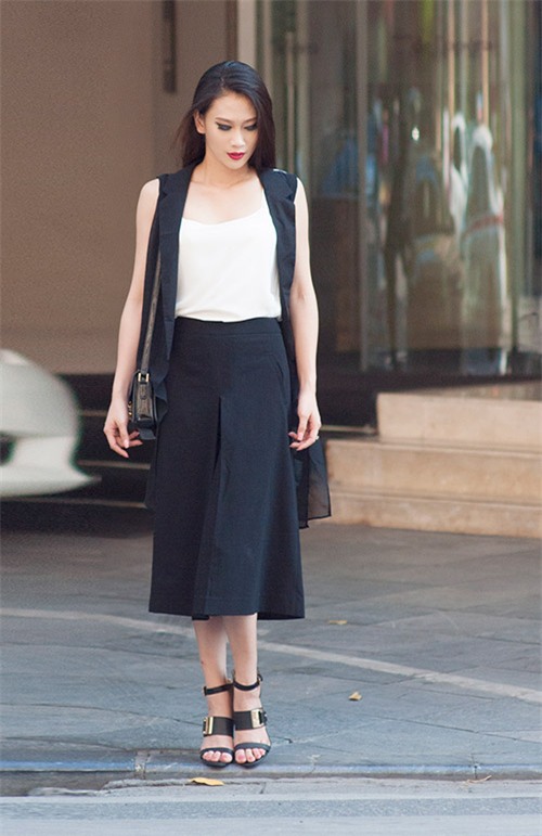 4. Nếu sở hữu chiều cao tương đối cùng thân hình mảnh, bạn đừng ngần ngại thử kết hợp vest trần tay với quần suông lửng.
