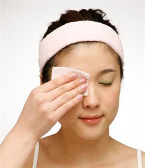 Các bạn gái nên sử dụng một loại tẩy trang mắt đặc biệt sau khi dùng mascara không thấm nước. Hãy lấy một miếng bông hình vuông, ấn nhẹ xuống mắt và lau nhẹ cho tới khi đi hết lớp trang điểm.Ngoài ra với cách này bạn cũng có thể tẩy trang các loại son môi bền màu.