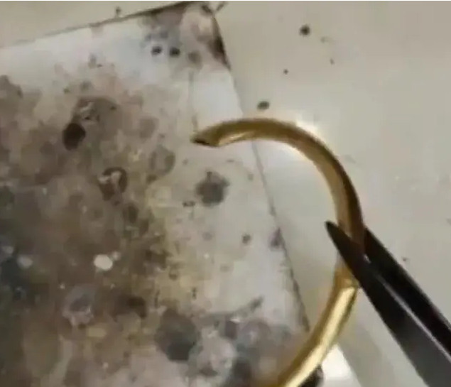Video cắt chiếc lắc tay, bên trong có nước rỉ ra. Nguồn: Sohu