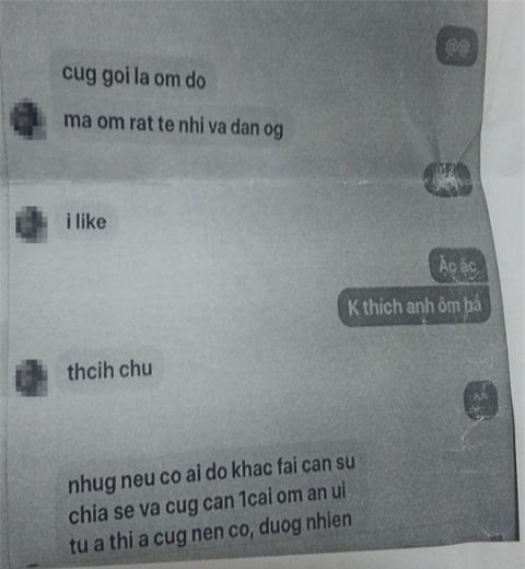 Những hình ảnh chụp lại tin nhắn trong điện thoại và Facebook được cho là của em A. và cô N. có nội dung như: “Em ước gì tối nay mình bên nhau, sợ sau này thương A. quá không bỏ được mà không thể đến được, chỉ có việc đi chơi thôi A. còn chưa để tui an tâm nói chi đến việc bảo vệ, ngủ ngon nhé my love...”.