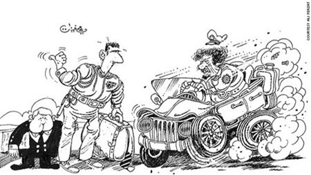 Rất nhiều nhà lãnh đạo ở vùng Trung Đông có tiềm năng trở thành đề tài trong những bức tranh châm biếm và thường thì cũng sẽ có một danh sách dài những đề tài bị cấm. Bất cứ ai cả gan lôi những điều cấm kị này ra để chế nhạo sẽ phải chịu những hình phạt hết sức hà khắc: bắt giam, tra tấn, đi lưu đày hoặc thậm chí là cái chết.
