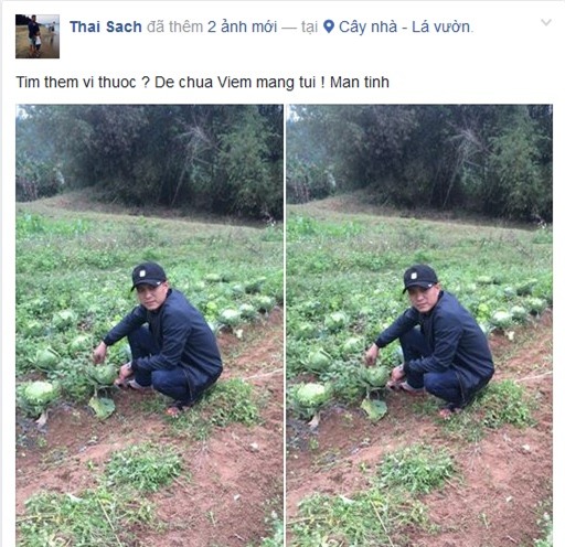 Sau khi đăng tải clip, người cháu tiếp tục up ảnh kèm theo lời chia sẻ hài hước: "Tìm thêm vị thuốc để chữa viêm màng túi mãn tính".
