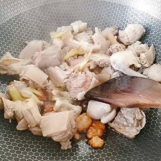 Đổ vịt ra chảo, cho thêm 5 – 7 tép tỏi và tiếp tục đun trên lửa lớn đến ghi nước cốt sánh lại.
