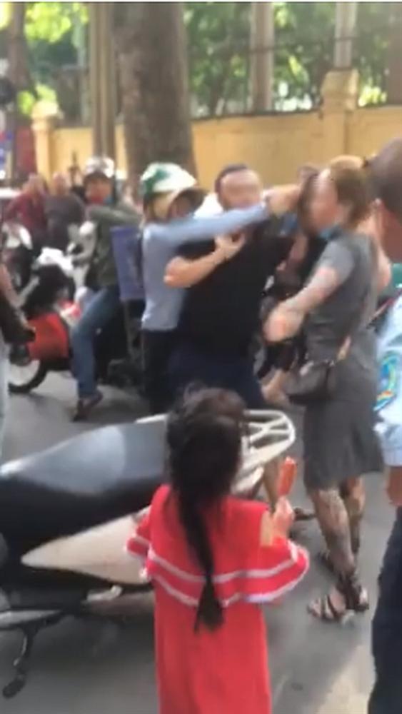 Anh chồng vẫn bảo vệ cô nhân tình "thôi... bỏ nó ra" nhưng chị vợ gay gắt: "Xe của tao, trả xe cho tao... mày đánh tao... giời ơi nó giết tôi... mày khốn nạn" rồi cầu cứu người đi đường: "Anh ơi gọi công an đi nó đánh em". Chị vợ liên tục chửi bới và đánh tình địch của chồng khiến lực lượng an ninh phường phải ra mặt. Trong khi đó người dân xung quanh còn "cổ vũ" cho chị đánh cô gái trẻ kia.