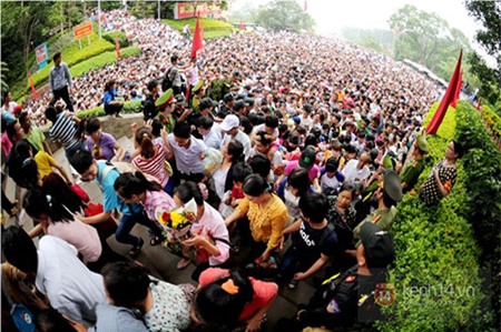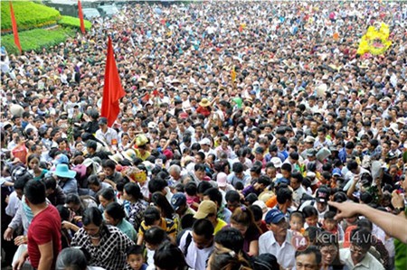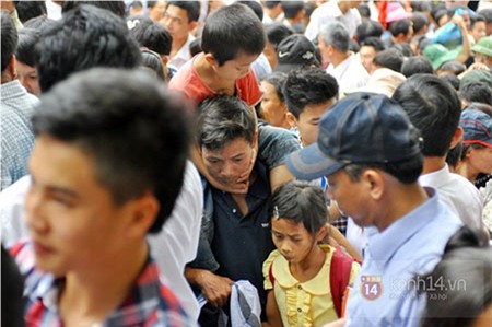 Dòng người đông đúc không tránh được tình trạng chen lấn, xô đẩy... |