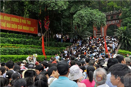 Ghi nhận tại buổi lễ dâng hương, ngay sau lễ dâng hương, dòng người đến từ khắp các tỉnh thành trên cả nước đã chen chân đổ dồn “biển người” về khu vực đền Hạ, đền Trung và đền Thượng tưởng nhớ vua Hùng. Nhiều cha mẹ cũng cho cả trẻ nhỏ đến dâng hương trong ngày Giỗ Tổ. Khu vực cổng đền, trung tâm lễ hội, chật cứng người.