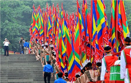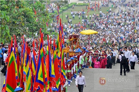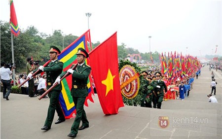 Tiếng chiêng, trống vang vọng khắp núi Nghĩa Lĩnh linh thiêng. Các làng, xã ở Phú Thọ cũng đồng loạt dâng hương tưởng nhớ danh nhân, danh tướng thời vua Hùng. Tại khu vực đền Thượng, đoàn lãnh đạo Đảng Nhà nước tiến vào dâng hương tưởng nhớ các vị vua thời vua Hùng. Kế sau đó, đoàn lãnh đạo dâng hoa tại lăng Hùng Vương.