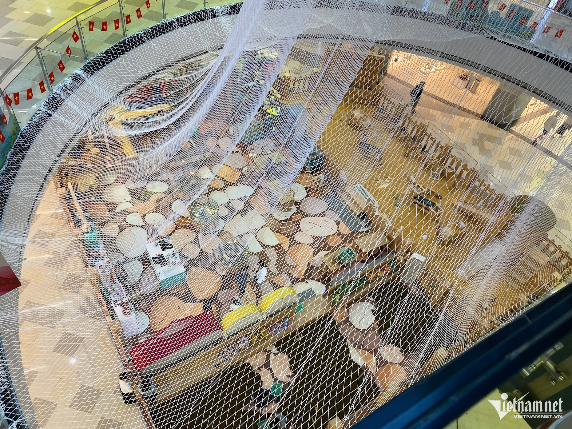 Hệ thống lưới được giăng kín khu vực giếng trời. Ảnh: Tuấn Kiệt.
