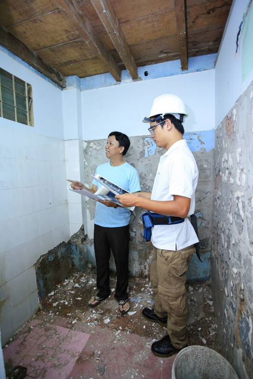 Anh Tài luôn đồng hành cùng đội ngũ kiến trúc sư trong suốt quá trình tu sửa để đảm bảo mọi thứ được thực hiện giống như phòng tắm mơ ước của anh.